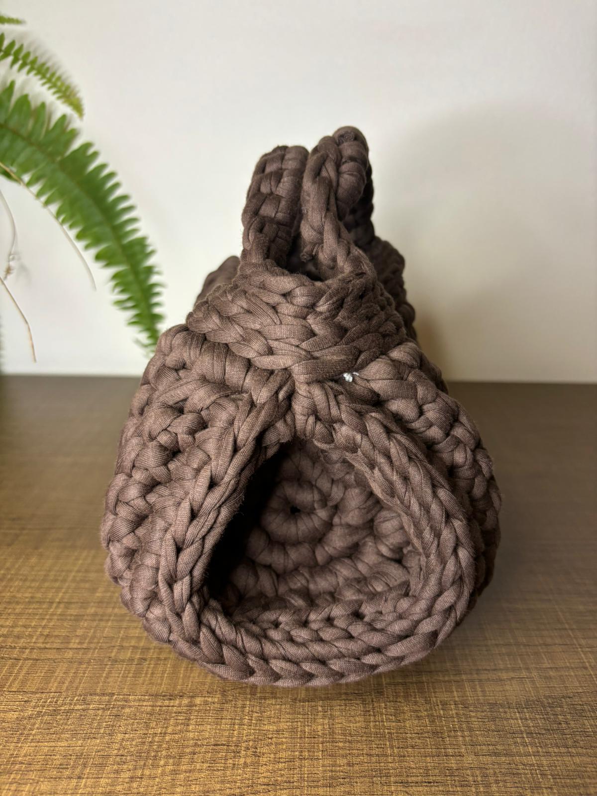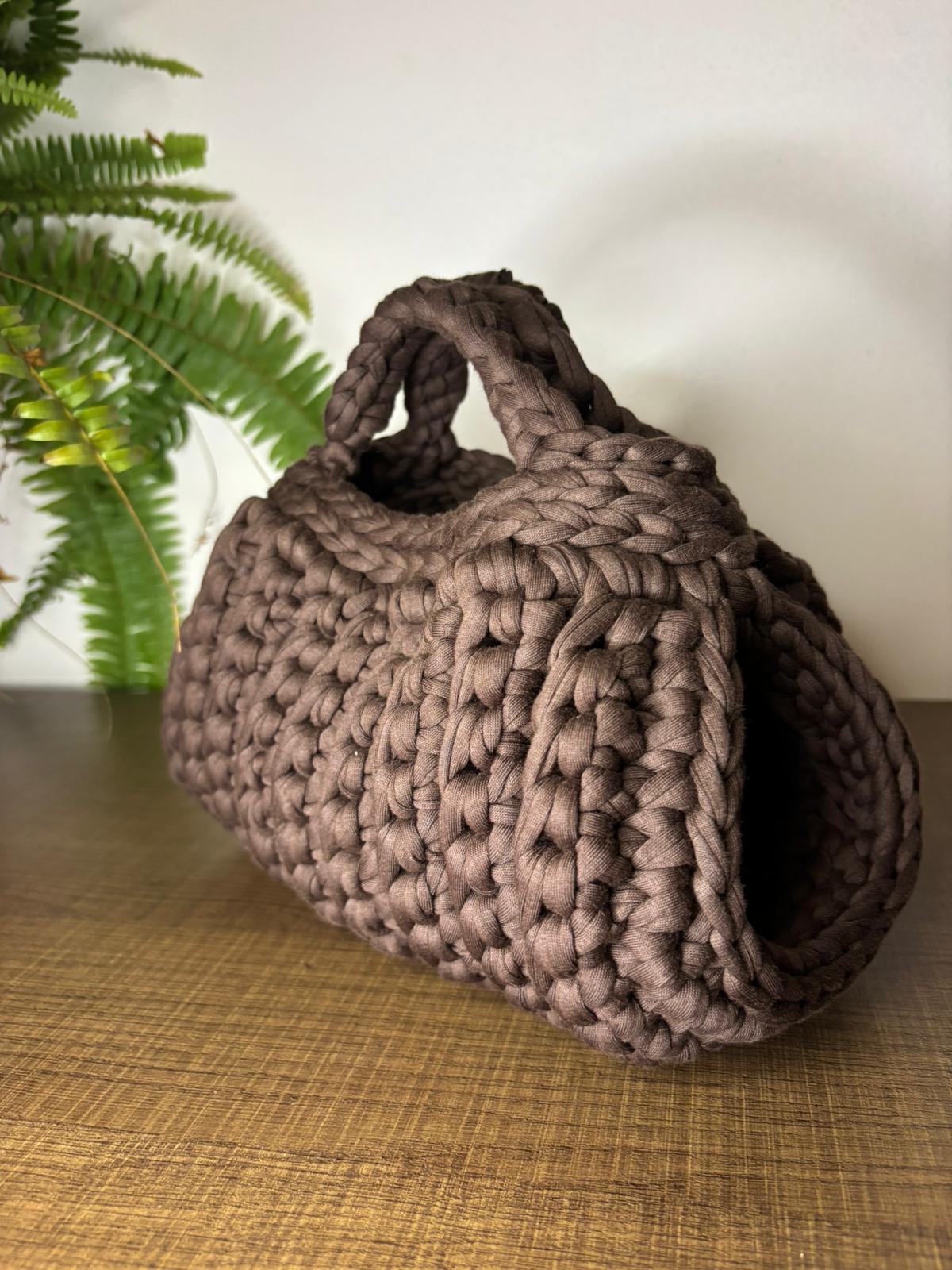 Bag in fettuccia marrone ha un fascino caldo e autentico . La sua struttura più corposa le dona carattere e solidità , mentre il marrone richiama la terra , la semplicità e l’eleganza naturale.
