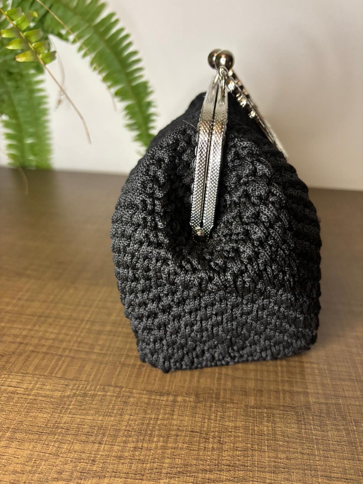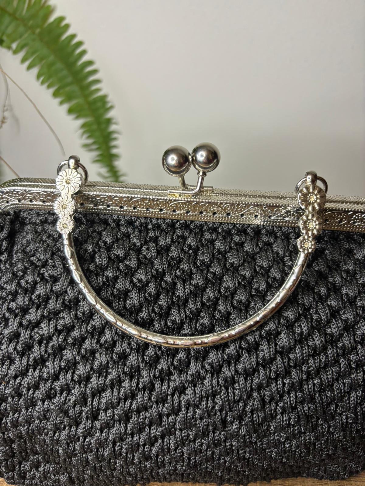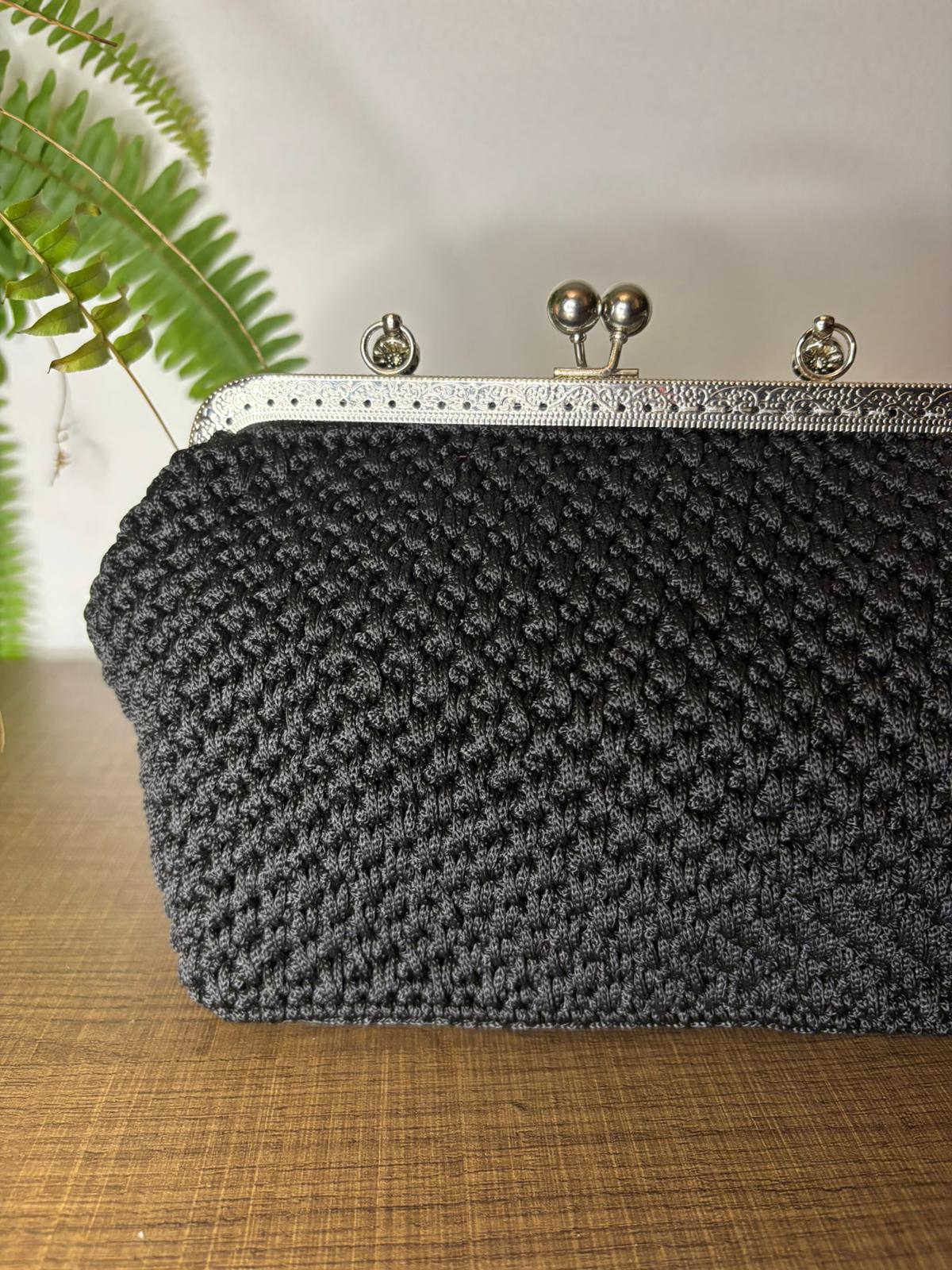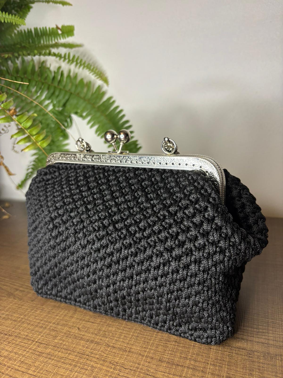 Clutch in cordino nero , elegante e con manico , è l’assenza della raffinatezza . Compatta e curata nei dettagli, il nero le dona un fascino senza tempo , deciso e versatile .